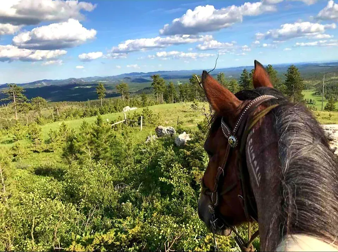 Bridle Ridge borders the Black Hills National Forest and offers 100 miles of scenic riding straight from camp. Experience wildflower fields, water crossings, and rugged rock outcroppings. Our trails cater to all experience levels, cover very varied terrain from both low and high country, and offer memorable rides and spectacular scenic views. It's common to spot elk, deer, coyotes, and, occasionally, mountain lions or black bears. On our Gallery page, you can see more